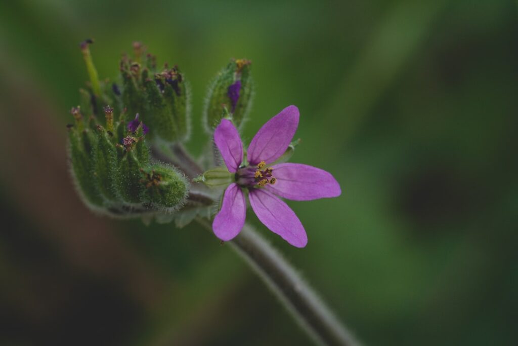 A close up of a purple flower on a plant, Alcácer do Sal, Portugal