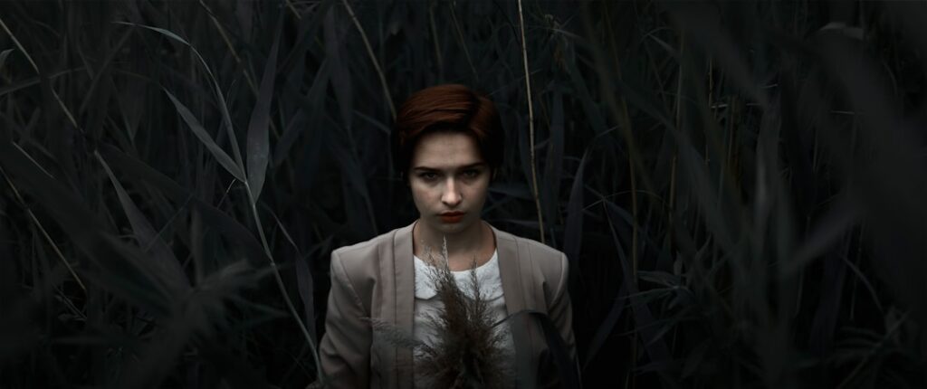 A woman sitting on a swing in a tree, Chernivtsi, Ukraine