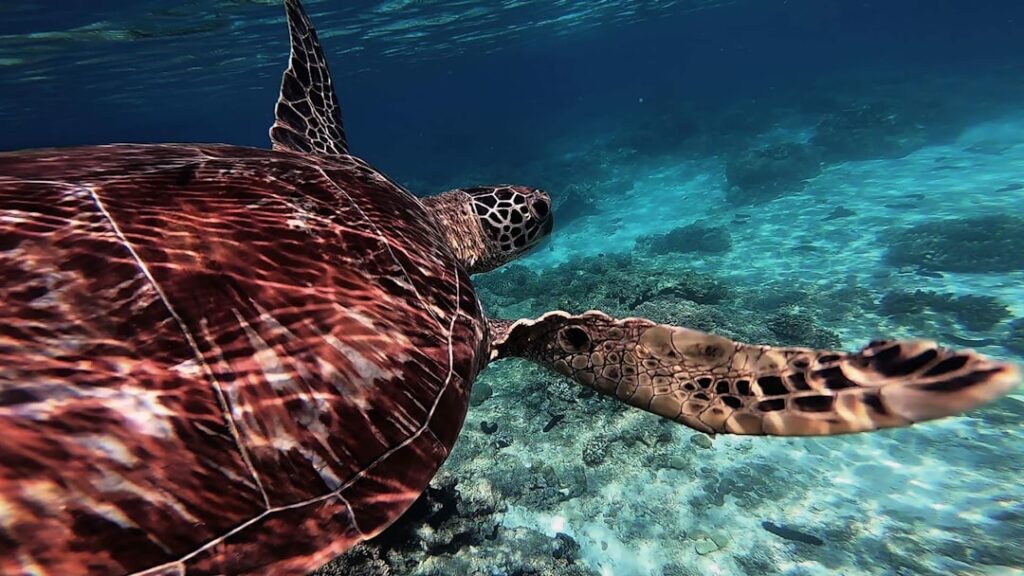 A turtle sitting on top of a coral reef, Dumaguete, Philippines