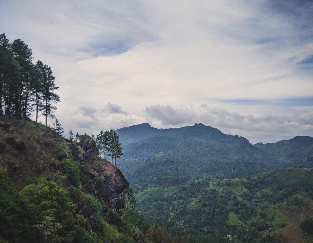 A view of a mountain with trees on the side of it, Gampola, Sri Lanka