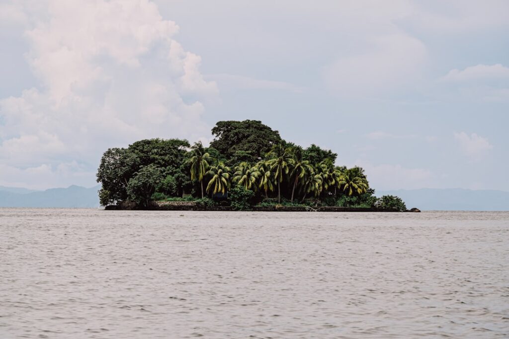 A large body of water surrounded by lush green trees, Isla de Providencia, Colombia