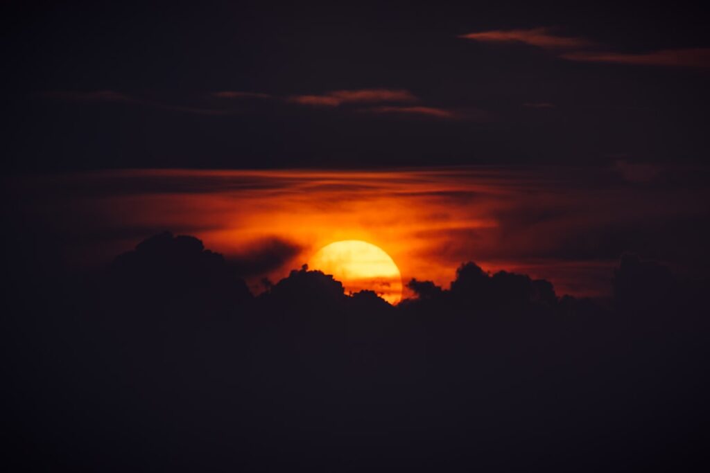 The sun is setting over a snowy mountain range, Kobarid, Slovenia