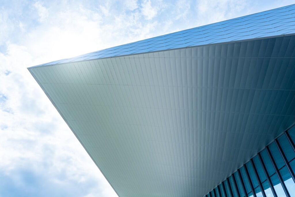 Lausanne, Switzerland - Roof architecture of the Olympic museum in Launsanne, Switzerland.