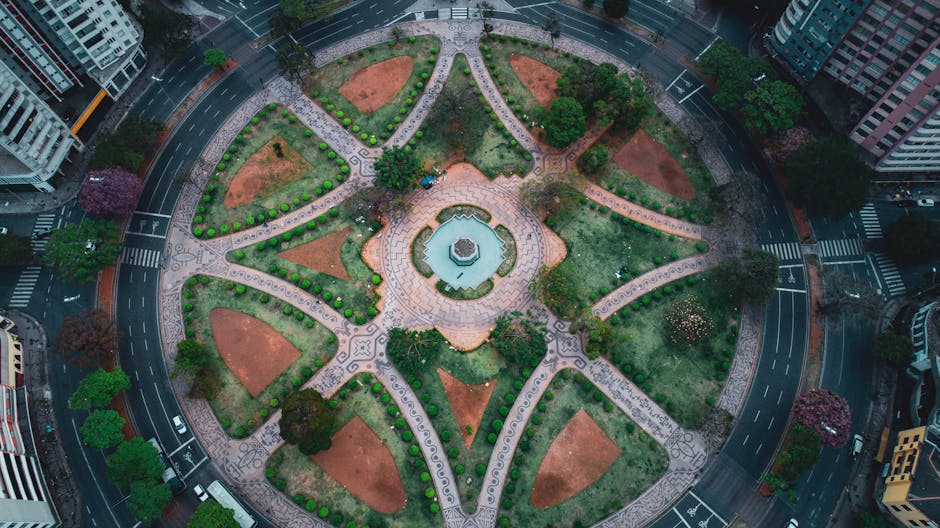 Aerial view of urban roundabout in Igapó, Lençóis’ Park, Brazil