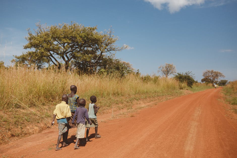 A group of playful children enjoying their time outdoors in Lira, Lira, Uganda