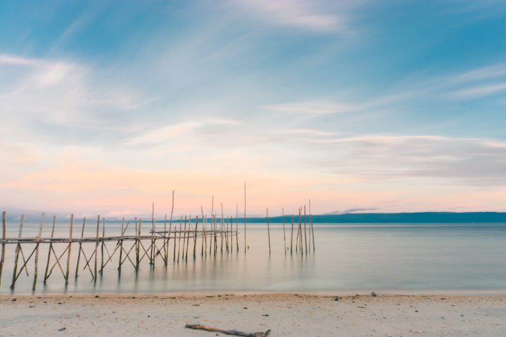 Tranquil view of Luwuk’s beach and pier during sunset, Luwuk, Indonesia