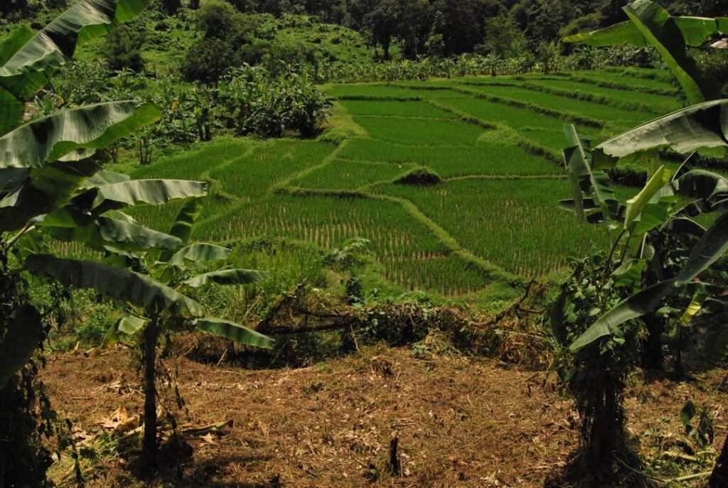 Farmers harvesting rice in a lush field in Mae Hong Son, Thailand., Mae Sai, Thailand