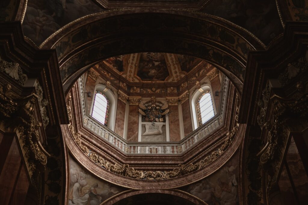 The ceiling of a building with a painting on it, Olomouc, Czech Republic