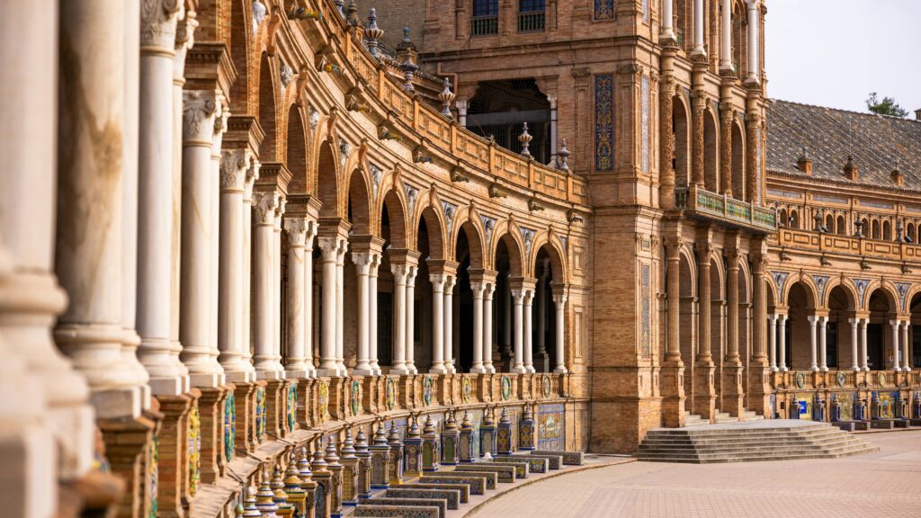 – Plaza de España – Rent a rowboat (€6/35 mins) beneath the tiled alcoves representing Spain’s provinces. At golden hour, the ceramic details glow like embers.