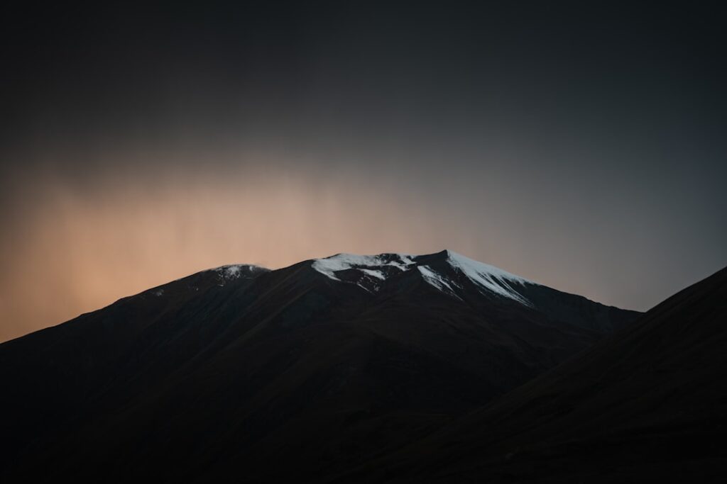 A brown mountain stands under a gray sky., Svaneti Mountains, Georgia